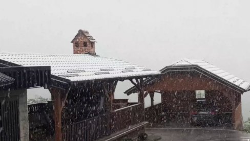 Veliki snežni nanosi stvorili su se u planinskim delovima Slovenije, gde je padao i grad, a sneg pada i na Rogli.