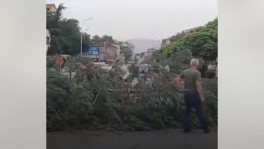 NA ženu je u centru Skoplja palo drvo koje je oborio snažan nalet vetra. Na snimku objavljenom na "Fejsbuku" vidi se kako ženu ispod srušenog drveta izvlače ekipa Hitne i građani koji su se zatekli u tom delu grada.