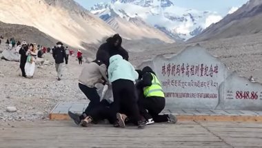 NEVEROVATNA scena zabeležena je 25. juna na Mont Everestu kada su se turisti sukobili na vidikovcu 8848, pa je morala da reaguje granična policija.