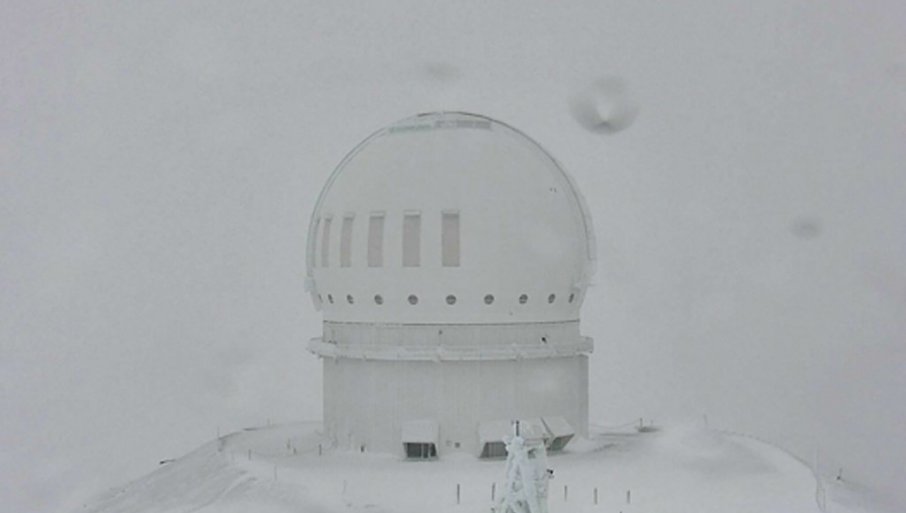 Kamere postavljene na zajedničkom teleskopu Kanade, Francuske i Havaja pokazale su zemlju prekrivenu belim bojom ubrzo nakon izlaska sunca u ponedeljak, da bi dva dana kasnije, kamere pokazale da snega nema.