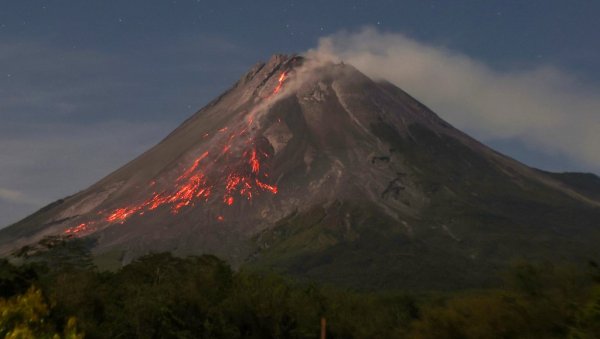 VULKAN na planini Merapi, koja se nalazi u blizini grada Džogdžakarte, u istoimenoj provinciji u Indoneziji, izbacila je danas vruću lavu.