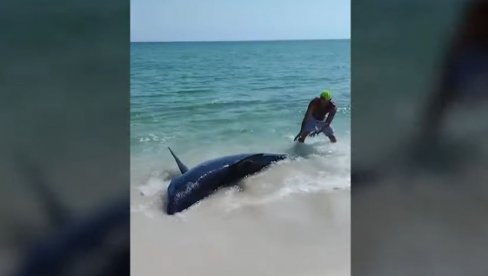 Mrtva ajkula je teška 165 kilograma i pripada ugroženoj vrsti Carcharhinus obscurus.