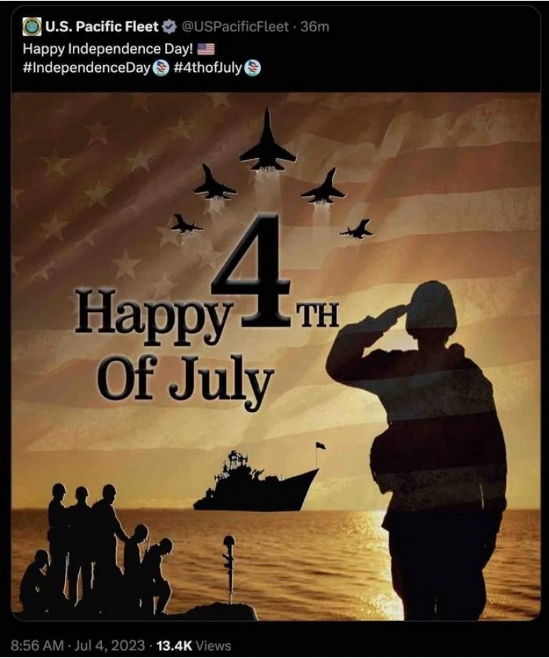 Četvrtog jula 2023. godine, zvanični Tviter nalog američke Pacifičke flote objavio je na Tviteru sliku koja naizgled prikazuje obrise razarača klase Kašin, pet Suhoja Su-27 i američkog vojnika koji salutira, na pozadini američke zastave, propraćeno porukom „Srećan 4. jul“. Ubrzo nakon što je čestitka objavljena, dobila je brojne odgovore, pri čemu su se mnogi korisnici rugali nalogu Pacifičke flote i sugerisali da tvit treba da se izbriše – te je tvit zaista uklonjen.
