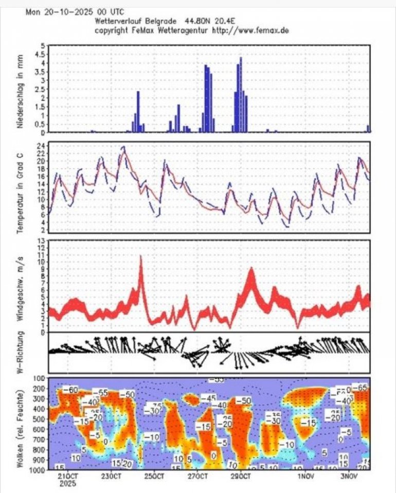- Najviše na vreme na Balkanu utiču konvektivna dešavanja u Pacifiku i Indijskom okeanu. Definitivno mape pokazuju hladniju zimu. Temperatura je klackalici i posle Miholjskog dana u četvrtak, opraštamo se od letnjih epizoda i ulazimo u sve hladniji period koji nas vodi ka pravoj zimi - zaključuje Ristić.