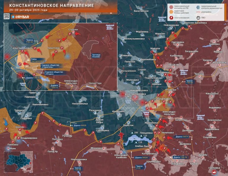 Prema mapiranju “DeepState” medija pod kontrolom ukrajinske Vojne obaveštajne službe (GUR), ruska vojska nastavlja napredovanje u Pokrovsku i presekla je glavni put koji vodi u grad iz Pavlograda. U samom Pokrovsku, siva zona se naglo proširila na centar i severne okruge. Piloti FPV dronova ušli su u južni Pokrovsk, uništavajući ukrajinsku logistiku i napadajući položaje ukrajinskih oružanih snaga. Ruske snage su takođe napredovale južno i severoistočno od Pokrovska, zaobilazeći Mirnograd.