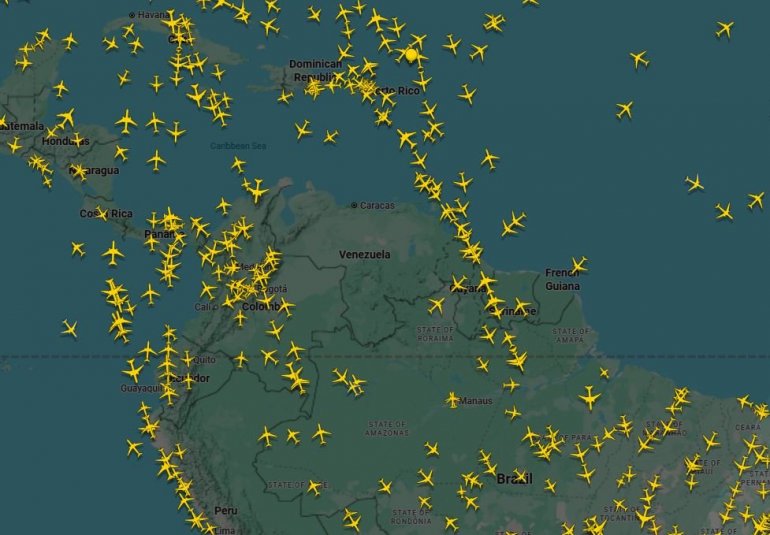 Vašzdušni prostor iznad Venecuele u ovom trenutku je potpuno prazan, pokazuju podaci portala Flightradar24.