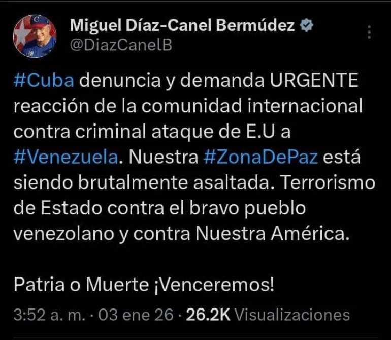 - Kao Vlada Čilea, izražavamo zabrinutost i osudu vojnih akcija SAD koje se odvijaju u Venecueli i pozivamo na mirno rešenje ozbiljne kroze koja pogađa tu zemlju - navodi se u njegovoj objavi na društvenoj mreži Iks.