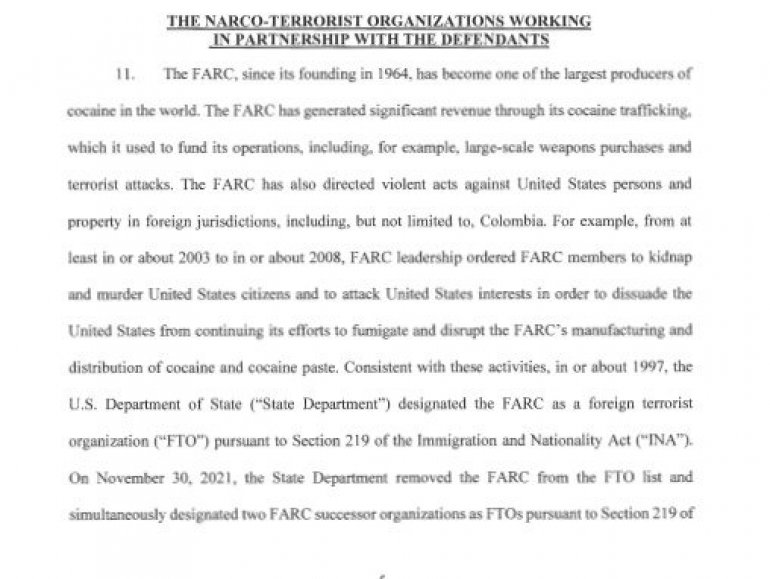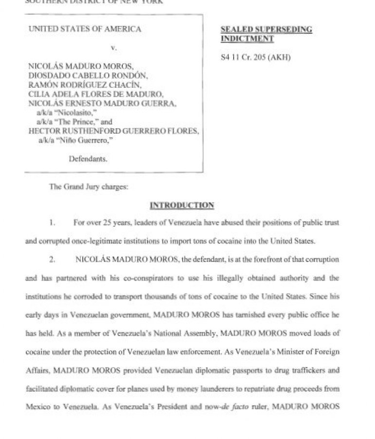 Optužnica je objavljena na 25 strana i povezuje Madura sa gotovo svim mogućim latinoameričkim narko kartelima.