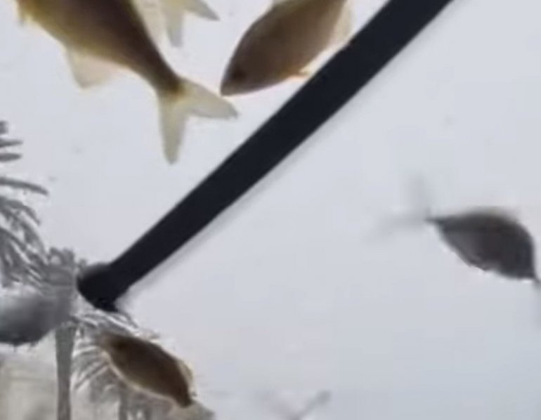 Nakon jakog naleta vetra, na više mesta u gradu pred iznenađenim prolaznicima, s neba su padale ogromne količine sitnih riba koje su ostale razbacane po tlu.