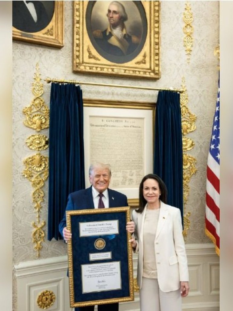 -Uručila sam predsedniku Sjedinjenih Američkih Država medalju, Nobelovu nagradu za mir, rekla je Mačado nakon sastanka sa američkim liderom u Beloj kući, prenosi CNN.