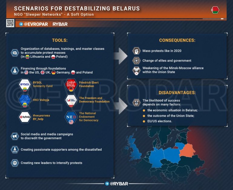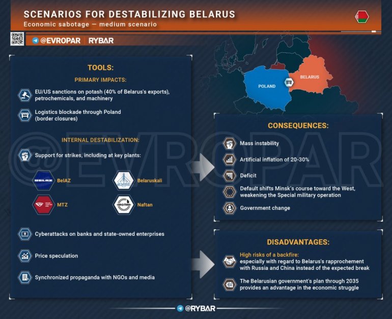 *Nije prvi put da zapad pokušava da destabilizuje Belorusiju, a glasine o novoj fazi u pripremi scenarija sabotaže već dugo kruže. Bilo je mnogo znakova da se rad u ovoj oblasti odvija, uključujući mnoge iz Litvanije i Poljske.