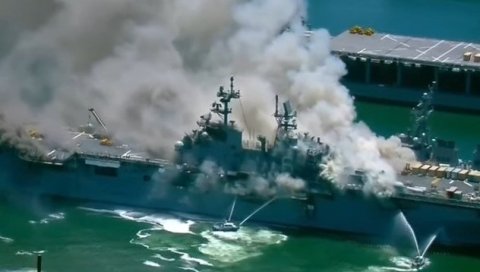 EKSPLOZIJA U AMERIČKOJ VOJNOJ BAZI: Požar na amfibijskom napadačkom brodu u San Dijegu (VIDEO)