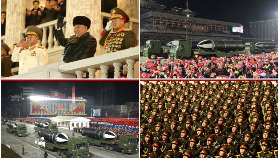 Parada je održana u četvrtak uveče na trgu Kim Il Sung nakon što je Pjongjang u utorak završio svoj osmodnevni kongres vladajuće Radničke partije, na kojem se lider Kim Džong Un obavezao da će ojačati svoj nuklearni arsenal, prenosi južnokorejska agencija Jonhap.
