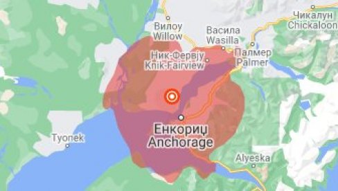 UMERENI zemljotres sa epicentrom na samo 14,5 kilometara severozapadno od Enkoridža potresao je danas najveći grad Aljaske.