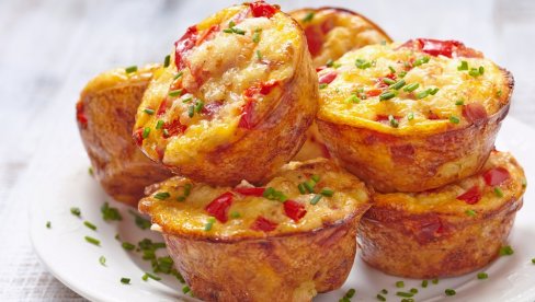 Izmešati vodu, ulje, ajvar, so, dodati brašno i prašak za pecivo. Izmešati i sipati u pleh, odnosno tepsiju ili u kalupe za mafine. Peku se na 200 stepeni oko 25-30 minuta.