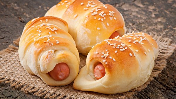 Testo potom prebaciti na radnu površinu, kratko premesiti, oklagijom razvući na krug debljine tri-četiri milimetara, pa podeliti na 12 trouglova. Na svaki staviti po jednu viršlu, pažljivo urolati, pa ređati na tepsiju obloženu papirom za pečenje. Premazati umućenim žumancetom, posuti susamom, te peći u rerni prethodno zagrejanoj na 180 stepeni oko 20 minuta, odnosno dok kiflice ne dobiju lepu boju sa svih strana. Poslužiti dok je toplo.