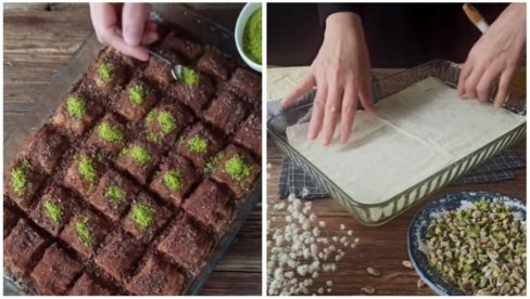 HLADNA BAKLAVA SA PISTAĆIMA: Hrskav slatkiš sa prelivom od čokolade (VIDEO)