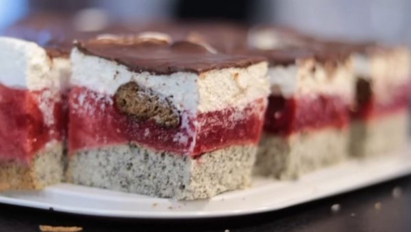 Kombinacija kore sa makom, želea sa malinama i fila od slatke pavlake čini je neodoljivom.