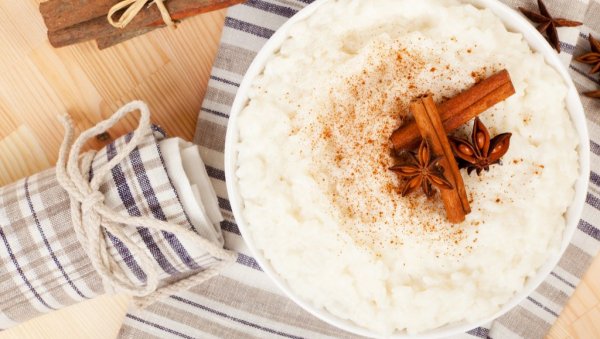 Sipajte u šerpu mleko, slatku pavlaku, mastiku, anis i 140 g šećera, pa zagrejte do vrenja, vodeći računa o tome da mleko ne iskipi. Uz lagano mešanje dodajte koru od limuna i prepolovljen štapić cimeta. Zatim ubacite pirinač, pa kuvajte, u poklopljenom sudu, 35 minuta, na 95-100 stepeni. S vremena na vreme otvarajte i polako mešajte.