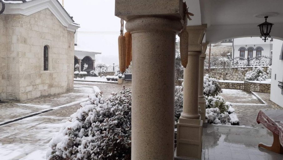 ZABELELO SE I OKO SVETINJE: Sneg kod Manastira Tavna, zadužbine Nemanjića - Monaštvo staro, padavine nema ko da čisti