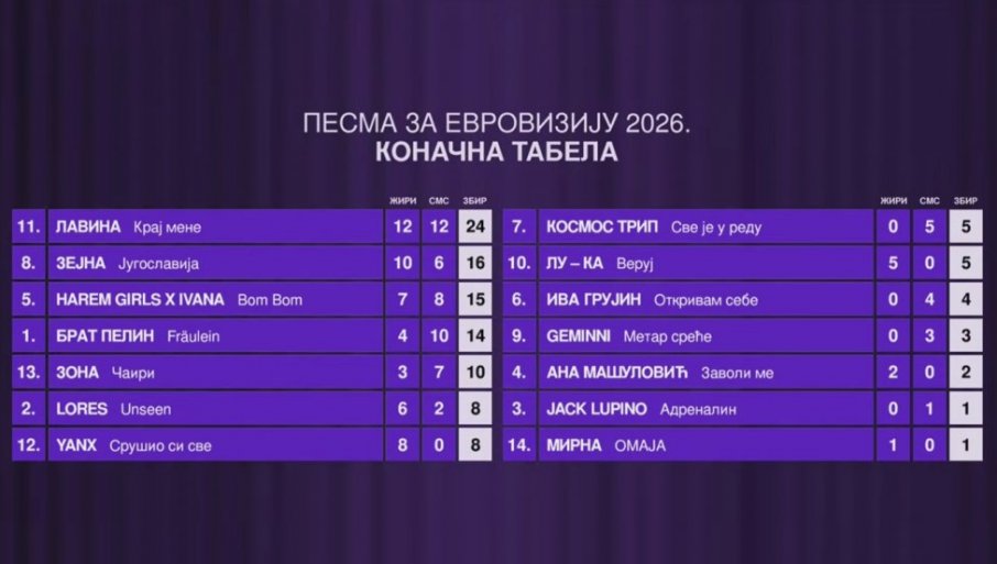 Završeno je finalno veče festivala "Pesma za Evroviziju 2026" i  poznato je ko će predstavljati Srbiju na Evroviziji 2026 u Beču.