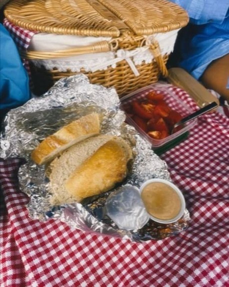 - Da vidite kako se jede u Americi. Šta ima bolje od ovoga, domaći hleb, domaća pašteta i domaći paradajz, domaća korpa i domaćica - pričao je Azrin suprug dok je snimao kako uživaju.