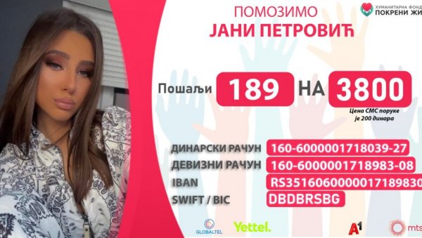 Podsetimo, Jana je rođena sa teškom srčanom manom, zbog koje je već imala dve ozbiljne operacije i više katetrizacija. Nakon najnovijeg pogoršanja zdravstvenog stanja i odbijanja turskih stručnjaka da urade novu operaciju zbog prevelikog rizika, u Milanu joj je zakazana operacija za koju će biti potrebno ukupno 80.000 evra, što samohrana majka dvoje dece ne može da sakupi.