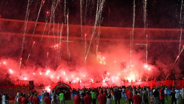 Fudbaleri Crvene zvezde su proslavili 35. titulu, kao i četvrtu duplu krunu u nizu na stadionu “Rajko Mitić” - odigrali su meč poslednjeg kola plej-ofa Superlige Srbije protiv Čukaričkog, a onda se desilo i pirotehničko slavlje.