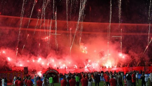 ... ali, kada su potom podeljene medalje i šampionski pehar - izvan stadiona crveno-belih "lansiran" je ogroman broj pirotehničkih sredstava.