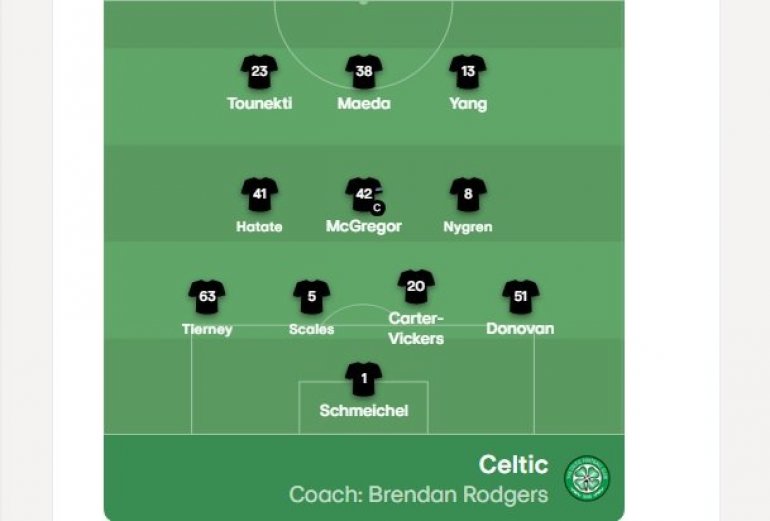 Seltik: Šmajhel - Donovan, Karter-Vikers, Skejls, Tierni - Nigren, Mekgregor, Hatate - Jang, Maeda, Tunekti