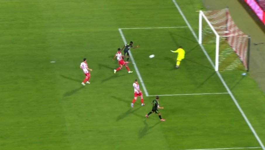 53' - Usred Zvezdine inicijative dve šanse za goste iz Glazgova. Pogledajte odakle bivši igrač Mančester sitija nije uspeo da savlada Mateusa čija je sjajna intervencija spasila Zvezdu: