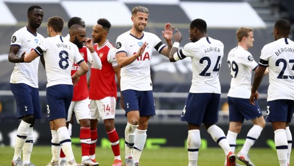 FUDBALERI Totenhema pobedili su danas na svom terenu u londonskom derbiju Arsenal sa 2:1, u utakmici 35. kola Premijer lige.