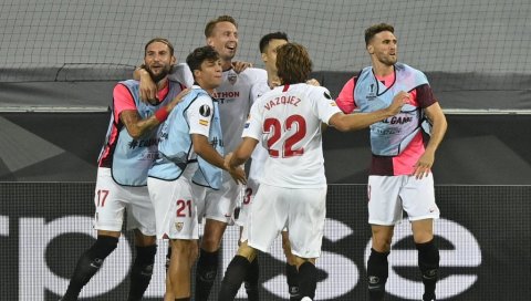 FUDBALERI Sevilje su prvi finalisti Lige Evrope, pošto su savladali Mančester junajted sa 2:1.
