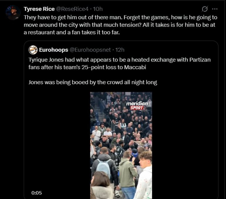 Pojavili su se snimci iz različitih uglova, a na jedan je reagovao i legendarni američki košarkaš, ali i nekadšanji reprezentativac Crne Gore Tajriz Rajs, koji je karijeru završio pre pet godina.