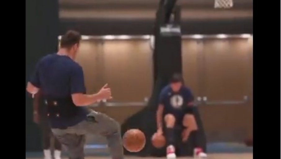 Tako je na društvenim mrežama osvanuo i video s jednog od poslednjih treninga Mavsa, na kojem se vidi kako Dončić nogom ubacuje loptu u koš, što je kod njega, ali i ostatka ekipe, izazvalo oduševljenje.