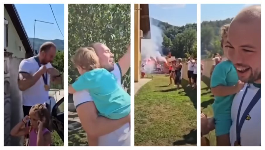 Naš vaterpolista, koji je osvojio zlatnu medalju i u Rio de Žaneiru 2016, i u Tokiju 2021. i sada u Parizu, u braku je dobio ćerku Lenku i sina Ognjena, a sa njima je i zakoračio u dvorište tasta i tašte, gde su ga sačekali trubači, ali i bakljada.