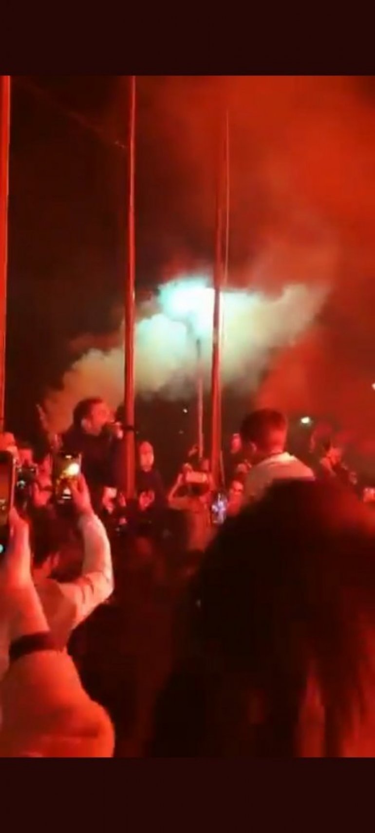 Veliki broj ljudi se okupio ispred dvorane u Peruđi i uz pesmu i baklje skandirao Atansijeviću koji se i sam latio mikrofona, ganut gestom simpatizera kluba kojem je doneo istorijsku triplu krunu.