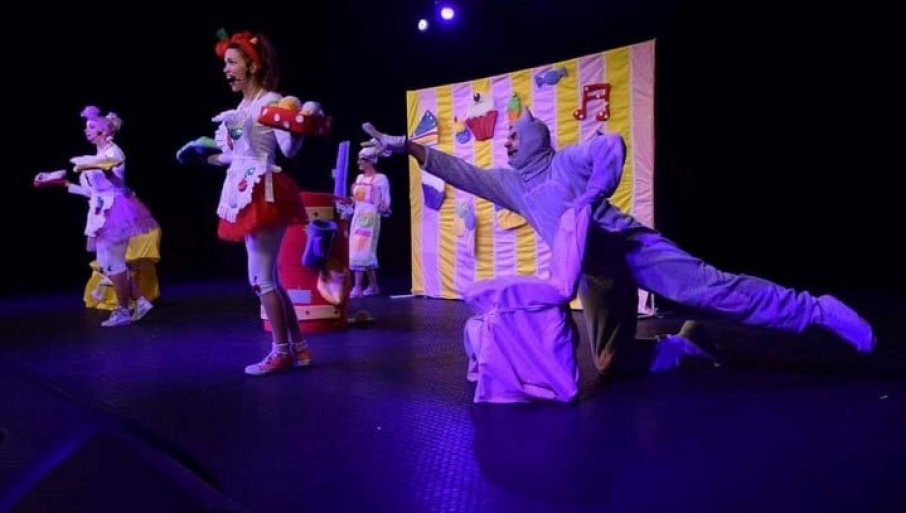 Glavni junaci su vlasnica poslastičarnice Pralina, zla čarobnica Lavinija, mačak Momčilo, Višnja i Jagoda. Osim što je zabavan, ovaj komad je i interaktivan, jer u njoj učestvuju i deca kroz komunikaciju sa mačkom Momčilom. Predstava se igra na platou ispred sportske hale, sa početkom u 19.30.