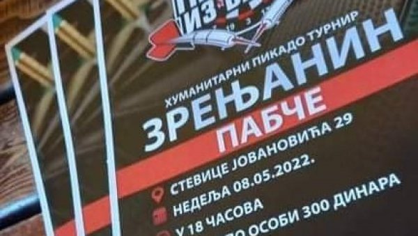 HUMANITARNA organizacija Srbi za Srbe, u nedelju 8. maja u zrenjaninskom kafeu Pabče od 18 časova, organizuje humanitarnu igru Pikado iz bloka, sa ciljem da se finansijski pomognu socijalno-ugrožene porodice, sa četvoro i više dece.