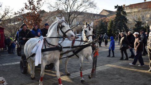 Tako je bilo u centru grada, gde su božićno drvo doneli članovi Konjičkog kluba „Banat“, a prvi među njima bio je Sava Petrov, ovogodišnji domaćin badnjaka.