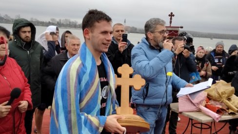 ALEKSA ZAVIŠA (21) iz Novog Sada, prvi je doplivao do časnog krsta u Beočinu.