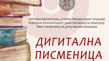 POVODOM Međunarodnog dana pismenosti koji se širom sveta obeležava 8. septembra od 1966. godine, Narodna biblioteka „Stefan Prvovenčani“ u Kraljevu prirediće kviz takmičenje „Digitalna pismenica“ na svojim profilima društvenih mreža Fejsbuk i Instagram, koje će sadržati pitanja u vezi sa najčešćim pravopisnim nedoumicama.