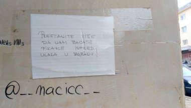 Na betonski stub ispred ulaznih vrata okačili su papir na kome je rukom napisano: