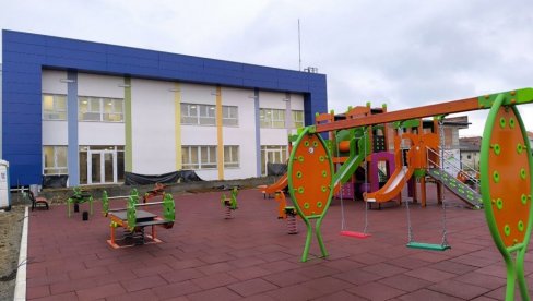 U DVORIŠTU novog vrtića, na 360 metara kvadratnih, izgrađeno je i novo igralište sa mobilijarom koji podstiče dečji razvoj i učenje. Na gumenoj podlozi se nalazi tobogan kula, ljuljaške, klackalice i njihalice, a pored toga postavljene su i četiri parkovske klupe. Ova investicija predviđena je ugovorom o izgradnji novog predškolskog objekta.