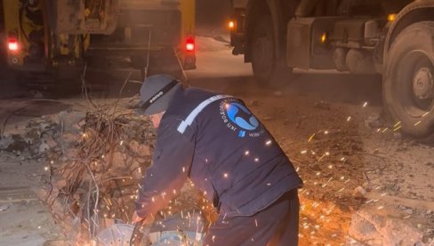 Oštećeni elektroenergetski kabl, kako je precizirano, nalazi se ispod sloja armiranog betona, neposredno uz cevovod DN 600 koji ni u jednom trenutku ne sme biti oštećen, pa se zbog toga radovi izvode izuzetno oprezno i usporeno.