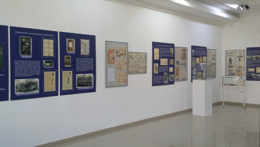 Izložba je posvećena jednom od naših najistaknutijih ilustratora i karikaturista, utemeljivača nagrade „Pjer“ i autora simbola Beograda – vrapca Dživdžana. Njegove ilustracije i stripovi objavljivani su u „Ježu“, „Politici“, „Borbi“, a bio je poznat i van granica naše zemlje.