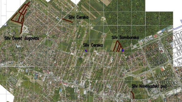 Sliv Somborska obuhvatao bi 814,30 metara mreže u četiri ulice, Judite Šalgo, Sofije Pasković, Paule Šosberger i Somborska rampa. Sliv Novosadski put obuhvatao bi 172,60 metara mreže u delu ulice Somborska rampa. Sliv Devet Jugovića bio bi 2.103 metra mreže u ulicama Devet Jugovića, Vojvode Putnika, Vladike Maksima, Kajmakčalanska, Nova 2, Nova 3, Novoplanirana 1, Novoplanirana 2. Sliv Cerska obuhvatao bi 228 metara mreže u Ulici Vase Eškićevića. Projektom je predviđeno ukupno 216 kućnih priključaka u tim delovima Veternika.