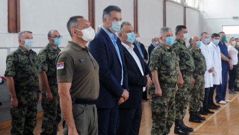 - Svi pripadnici vojnog zdravstva su ispunjavali sve svoje zadatke, pomogli su ljudima i ovde i na svim drugim mestima i ja zaista delim ogromno osećanje ponosa sa svim pripadnicima Vojske i građanima Srbije kada vidimo kakve lekare, kakve sestre imamo u vojnom zdravstvu. Ovi ljudi nisu pitali gde idu ni zašto idu, bilo je samo potrebno da im se da zadatak i da oni daju sve od sebe da pomognu građanima Novog Pazara, Sjenice i Tutina. Svi oni su ostavili svoje porodice. Niko od njih nije išao na odsustvo, najveći deo njih se ovde nalazio od 3. jula, neprekidno radeći i ne pitajući kada će prestati. Vojska je ponosna što ima takve ljude, a svi građani Srbije mogu da budu mirni i sigurni što imaju takvu vojsku, jer znaju da će u času nevolje biti pomoć i da će oni doći tu - rekao je ministar Vulin i naglasio da je Vojska Srbije vojska svih građana.