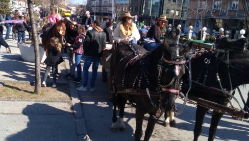 POVODOM 8.marta, članovi Konjičkog kluba „Šumadinac“ iz Kutlova kod Kragujevca organizovali su defile fijakera ulicama grada i delili cveće damama.