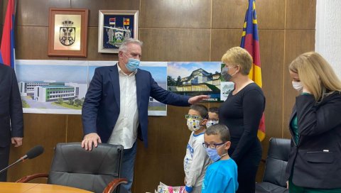 Stoijljkovići su na zahtev ministra bili gosti Gradske uprave i gradonačelnika dr Slobodana Milenkovića. Ministar se zahvalio lokalnoj samoupravi na podsticajima koje izdvaja za popravljanje demografske slike Vranja, a budućim prvačićima uručio je skromne poklone: rančeve za školu i trenerke.